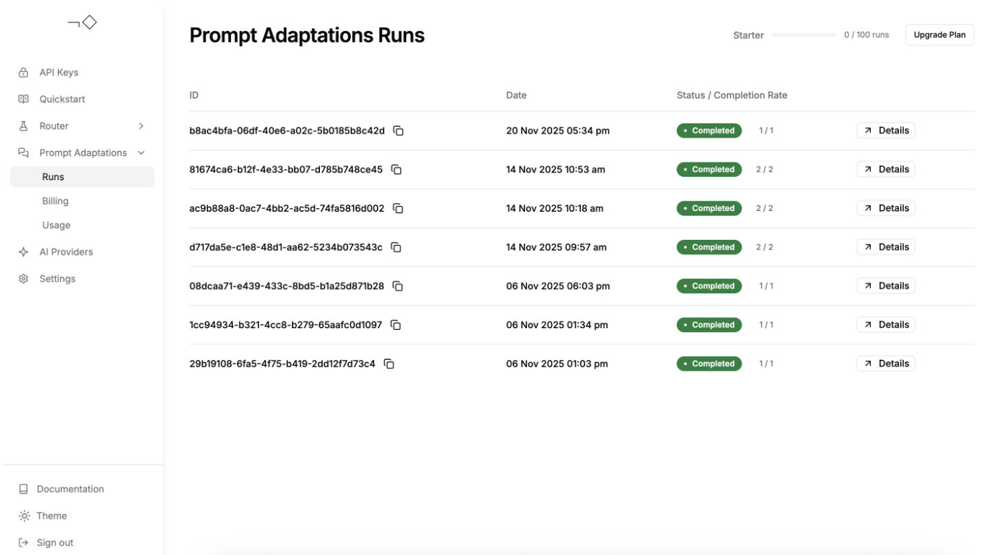 Prompt adaptation is in betaPlease reach out to us if you want to test it out.